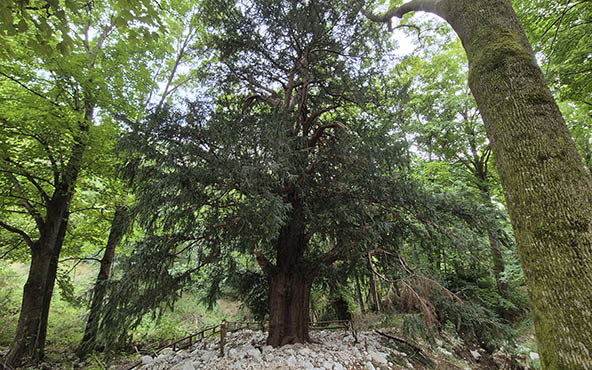 Respirare l’odore della foresta e godere dell’esperienza tattile che deriva dal contatto con gli alberi (compreso il leggendario tasso del Giardino botanico del Monastero, alto 16 metri e vecchio quasi 600 anni) e con un territorio che qualcuno ha giustamente definito “un atlante geologico”.